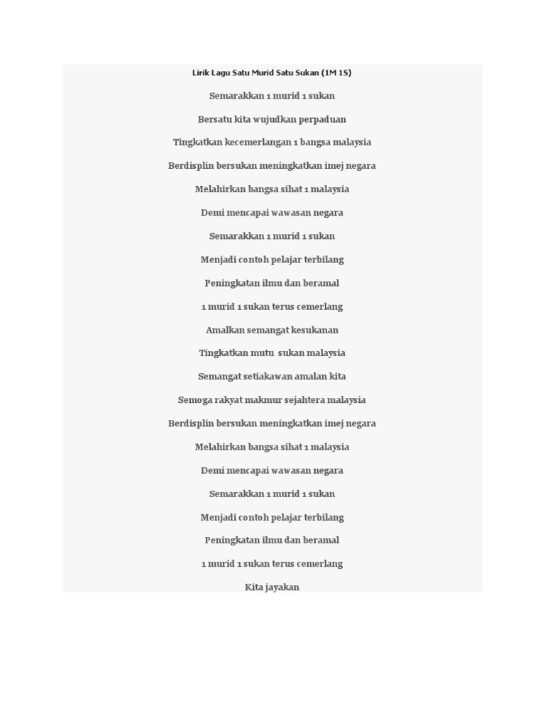 Lirik Lagu Satu Murid Satu Sukan Pdf